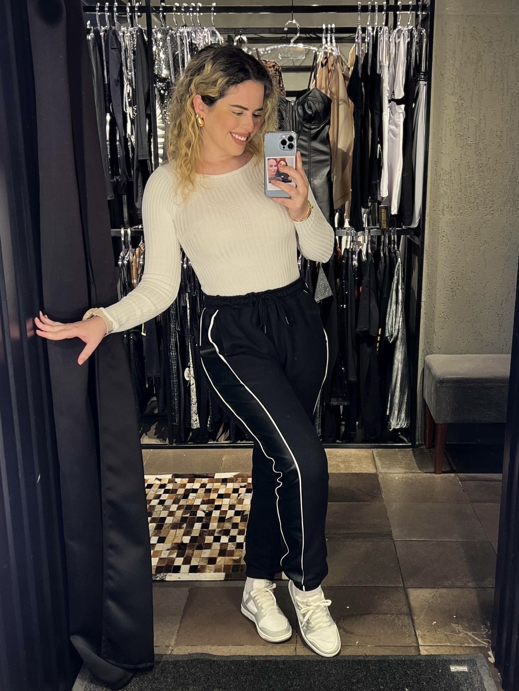 Detalhe de Courino na Lateral: Um toque sofisticado que transforma a calça, trazendo um aspecto elegante e contemporâneo.