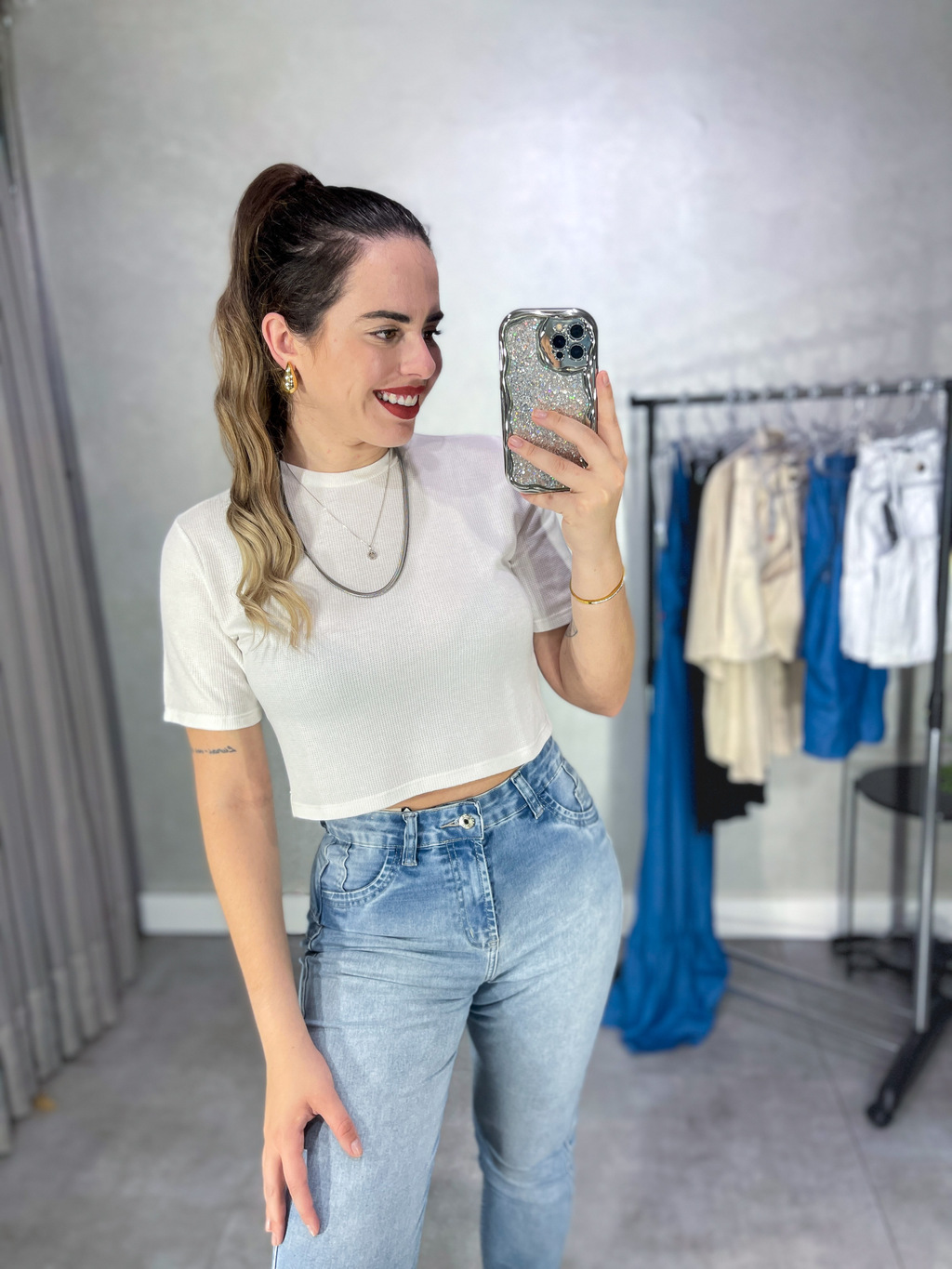 Com um bolso na parte de trás, ela traz aquele toque de praticidade que você precisa. E na cor clara, é perfeita para compor looks frescos e modernos em todas as estações.