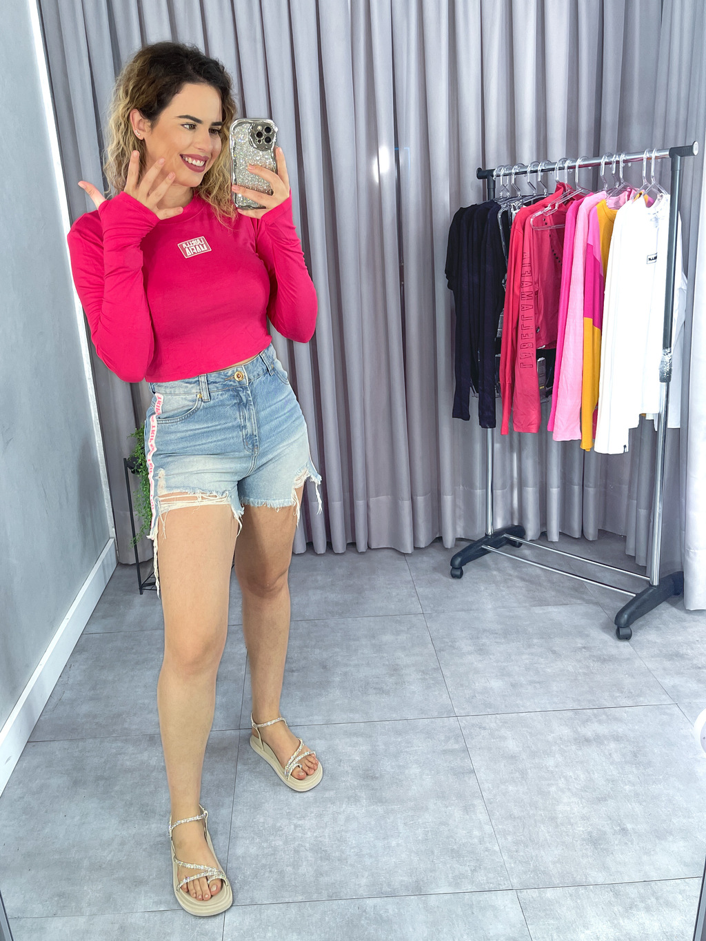 Combine o Cropped Logomania com jeans, shorts ou saias para criar um look moderno e cheio de atitude. Não se esqueça de adicionar acessórios que reflitam seu estilo pessoal! ✨