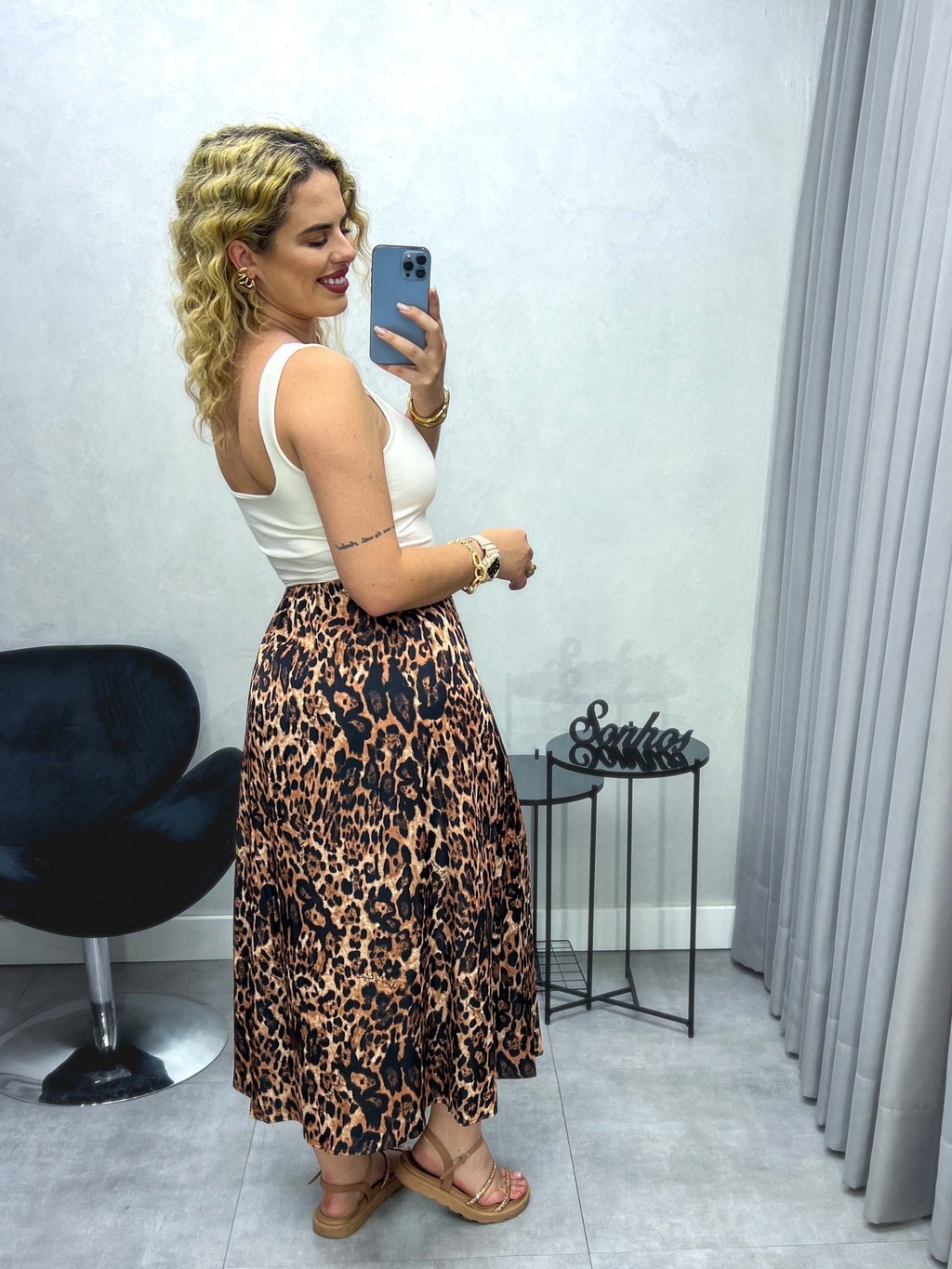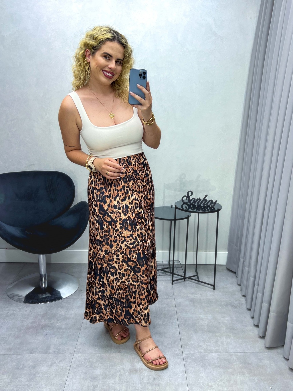 Descubra a Saia Cetim Animal Print - Booq, uma peça que combina sofisticação e estilo em um único produto. Confeccionada em tecido cetim de alta qualidade, esta saia midi é perfeita para quem deseja se destacar com elegância.