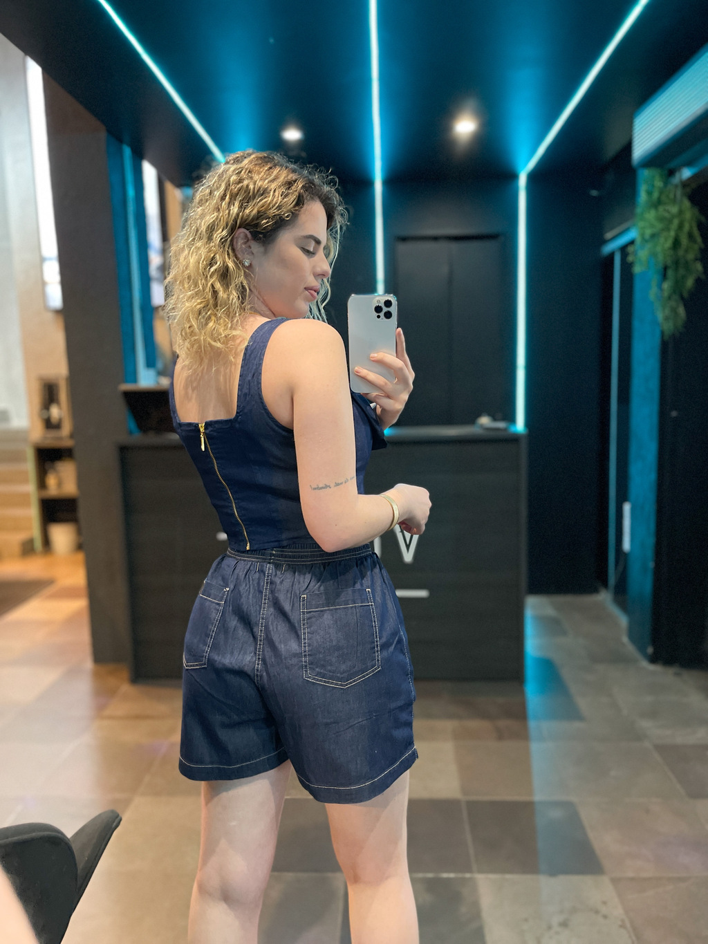 Descubra o Short Escuro Trip, a peça perfeita para quem busca conforto e estilo em todos os passeios! Confeccionado em tecido jeans escuro com elastano, este short proporciona liberdade de movimentos, sendo super confortável para as suas aventuras diurnas.