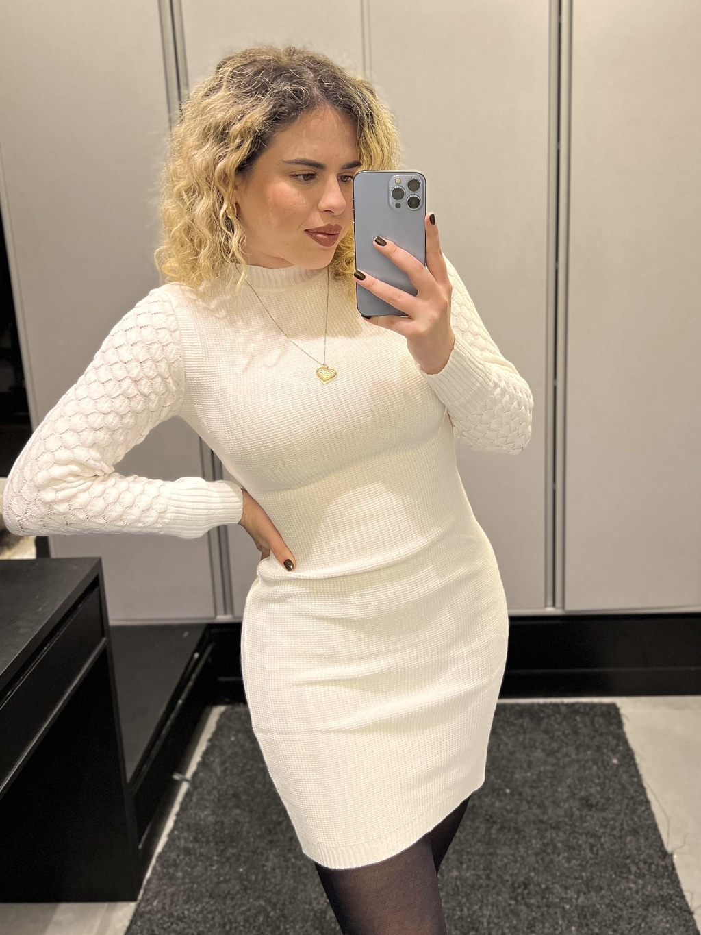 Descubra o Vestido Tricot Manu, uma peça confeccionada em tecido tricot de alta qualidade que combina estilo e conforto. Este vestido se destaca pela sua textura nas mangas, que traz um charme especial à peça, permitindo que você se sinta elegante em qualquer ocasião.